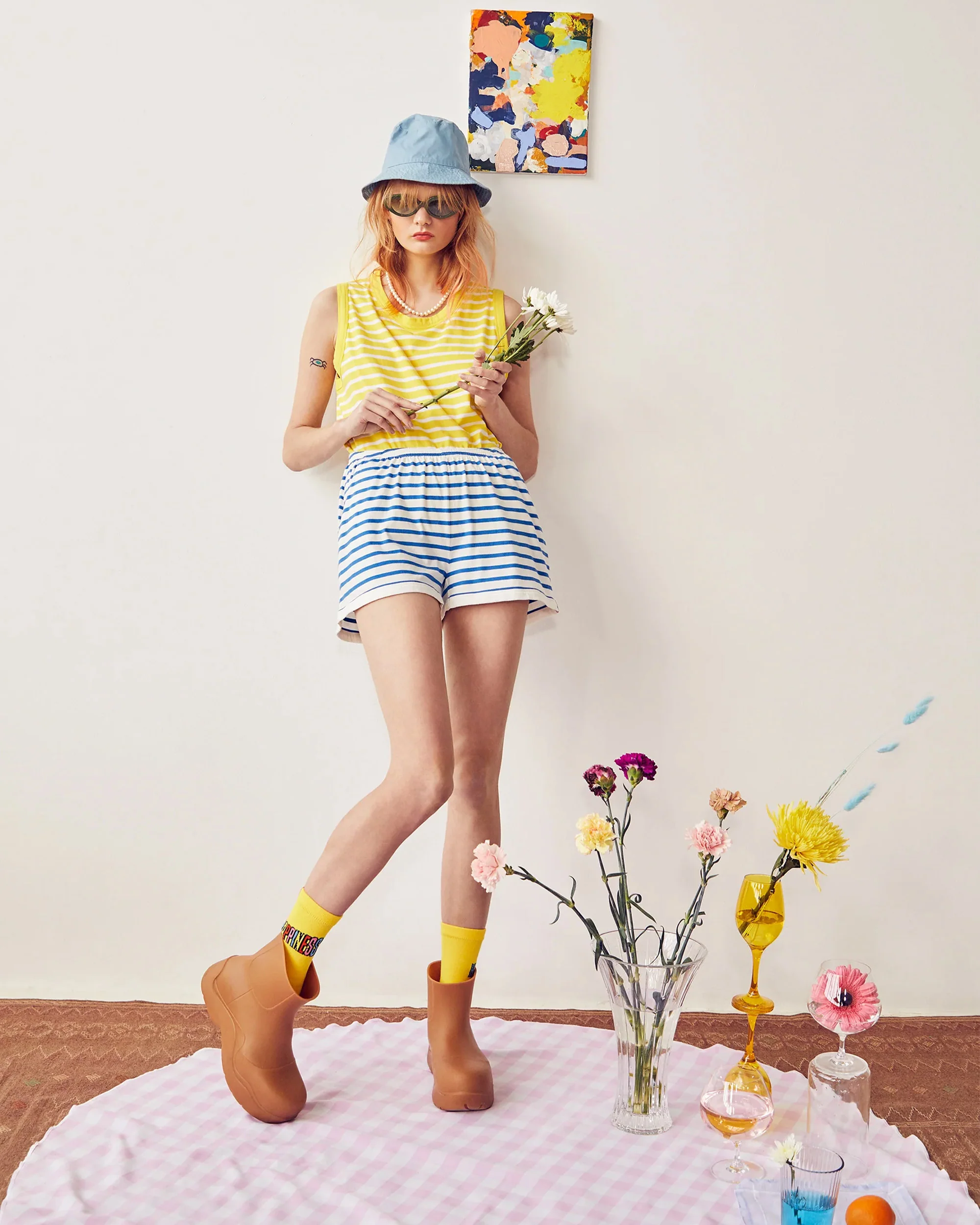 The Short is like a chic, grown-up version of those shorts you used to wear to volleyball camp. Easy, comfortable. What more can you ask for in a weekend summer short!? In a range of stripes and solids, pair them with any number of our tanks and tees. We love a set.